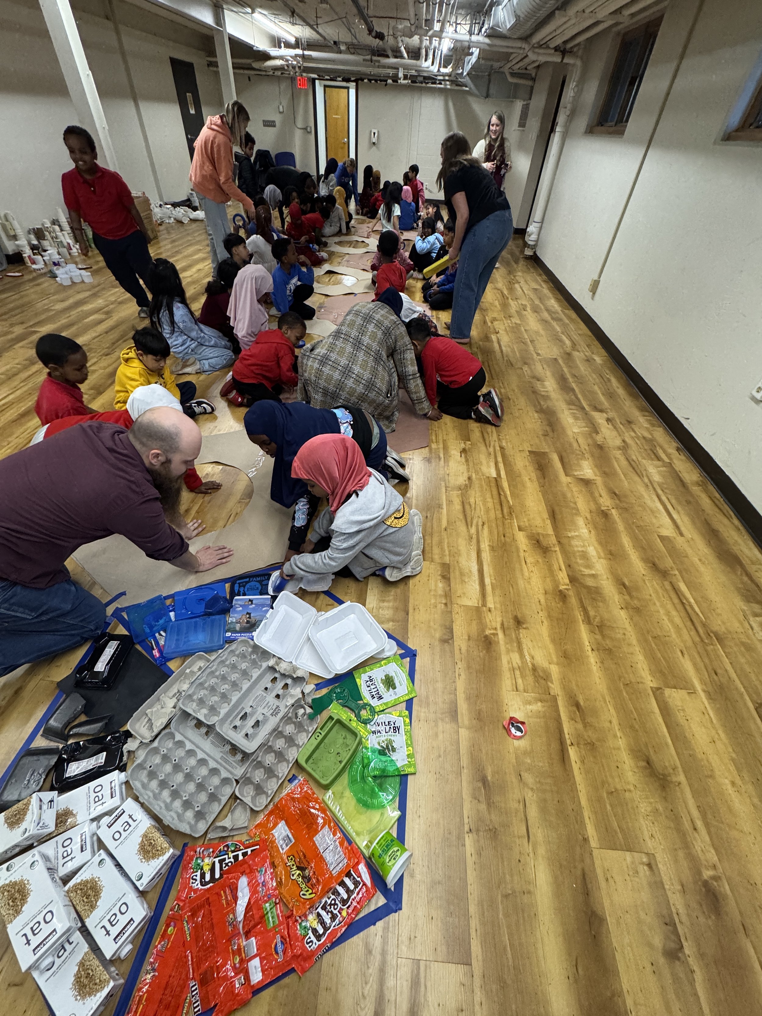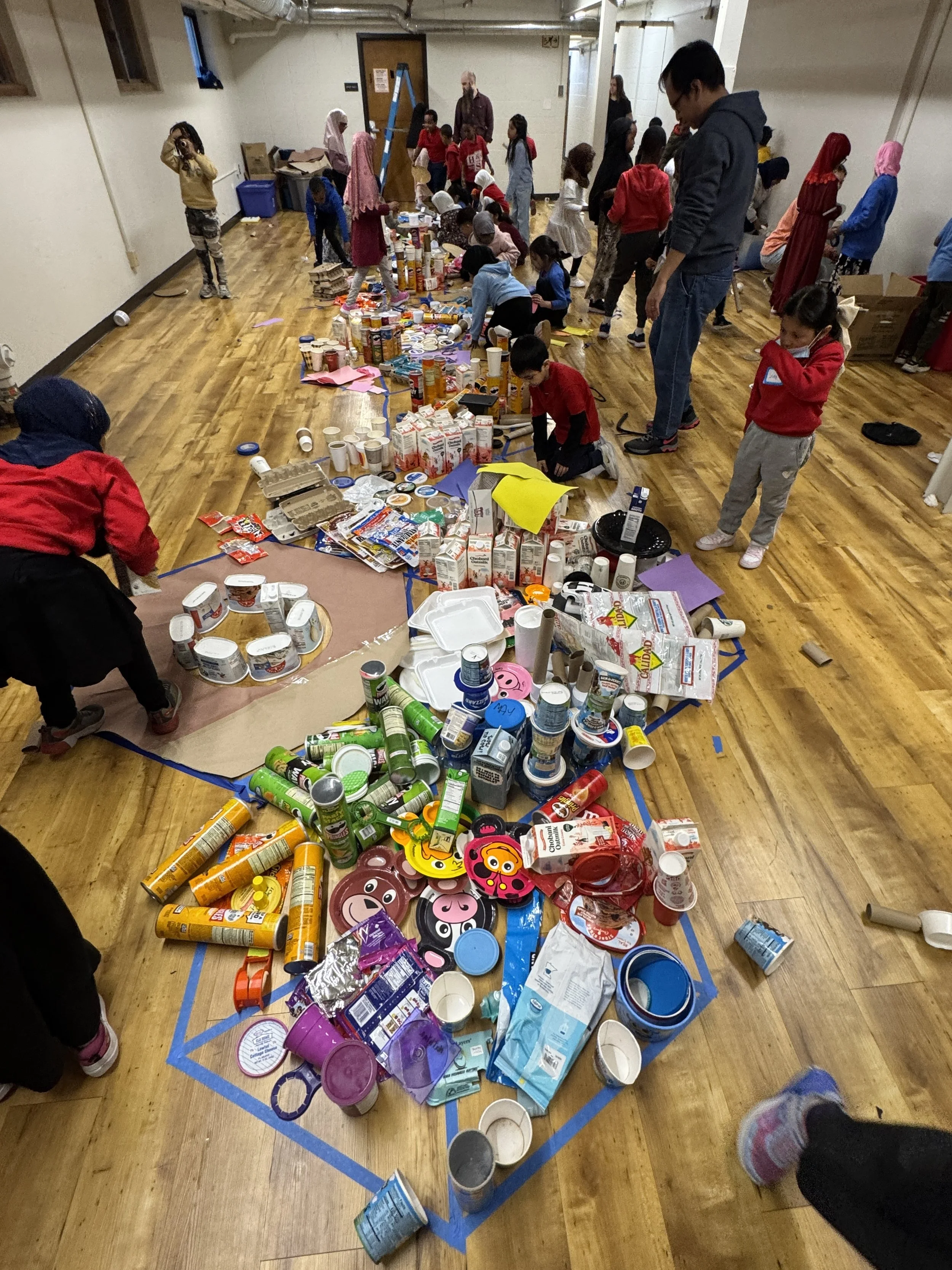 I was honored in early 2025 to be awarded a $7500 dollar Art Experience from the Minnesota State Arts Board. This grant grew out of a multi-year relationship with Hennepin Schools in Minneapolis. Since 2019 I have been collaborating with the faculty, staff and students on a series of recycled art projects. In 2024 Principal Mehmood proposed an expansion of this collaboration. To that point we had been collaborating on a single yearly project, usually focused one age group (6-8th graders in 2019, 2021 and 2022, 2-3 graders in 2024). Principal Mehmood, in collaboration with first-time dedicated grade-school art teacher Diane Anderson, proposed we spend an entire school year working on three distinct projects that would involve the entire Hennepin student body!